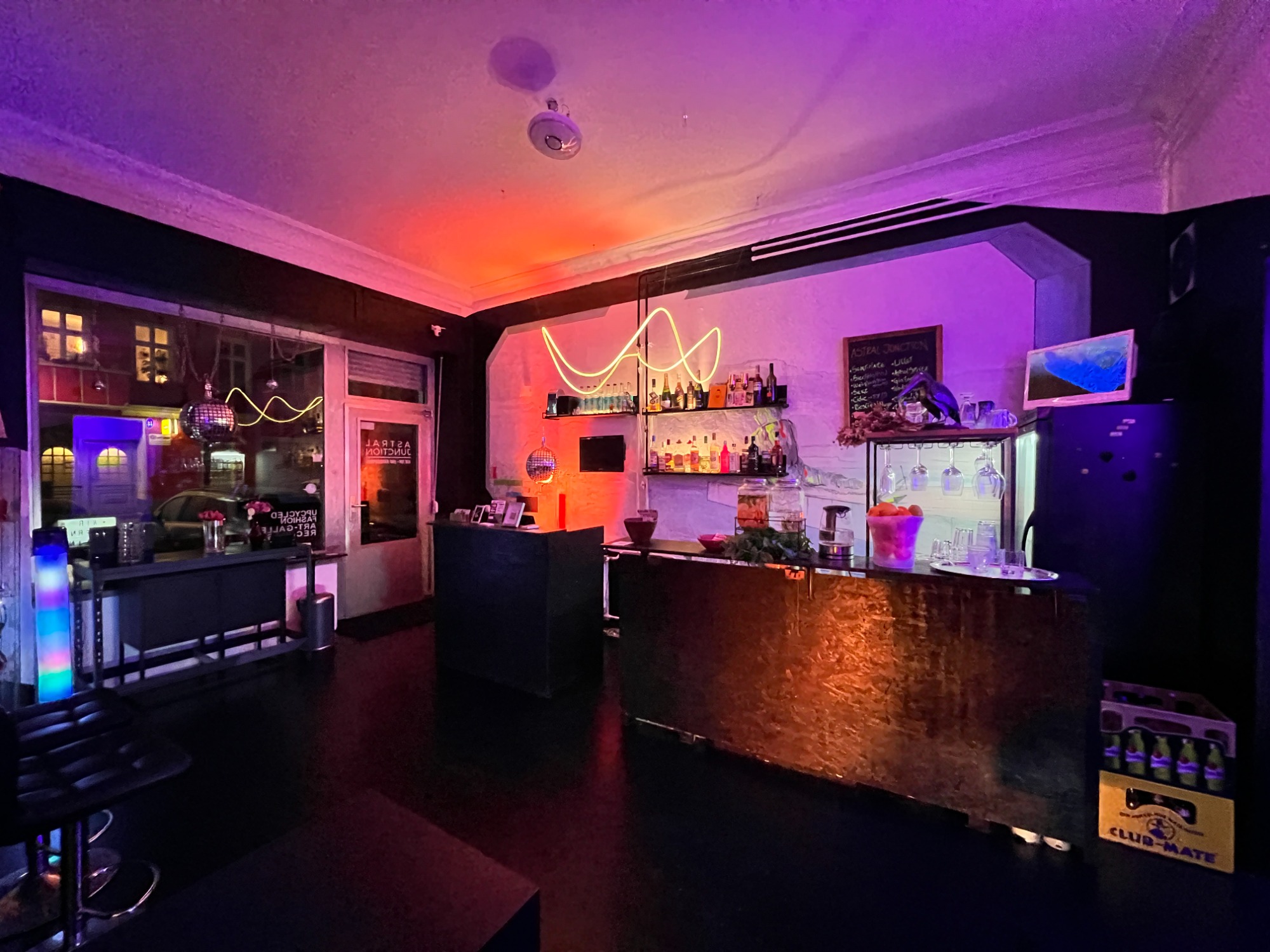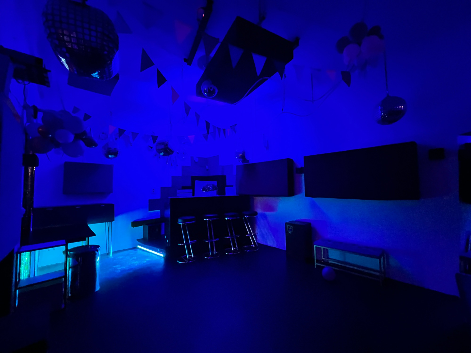 Unser großzügiger Space ist super vielseitig und perfekt für alle möglichen Anlässe. Jeder Raum hat eine fette Stereoanlage, und wir haben einen Beamer für dein Karaoke oder deine Präsentationen. Außerdem gibt’s bei uns eine gut sortierte Bar und jede Menge Unterhaltung für deine Gäste – von Brettspielen bis zu eine Konsole aus den 90ern mit über 200 klassischen Spielen.